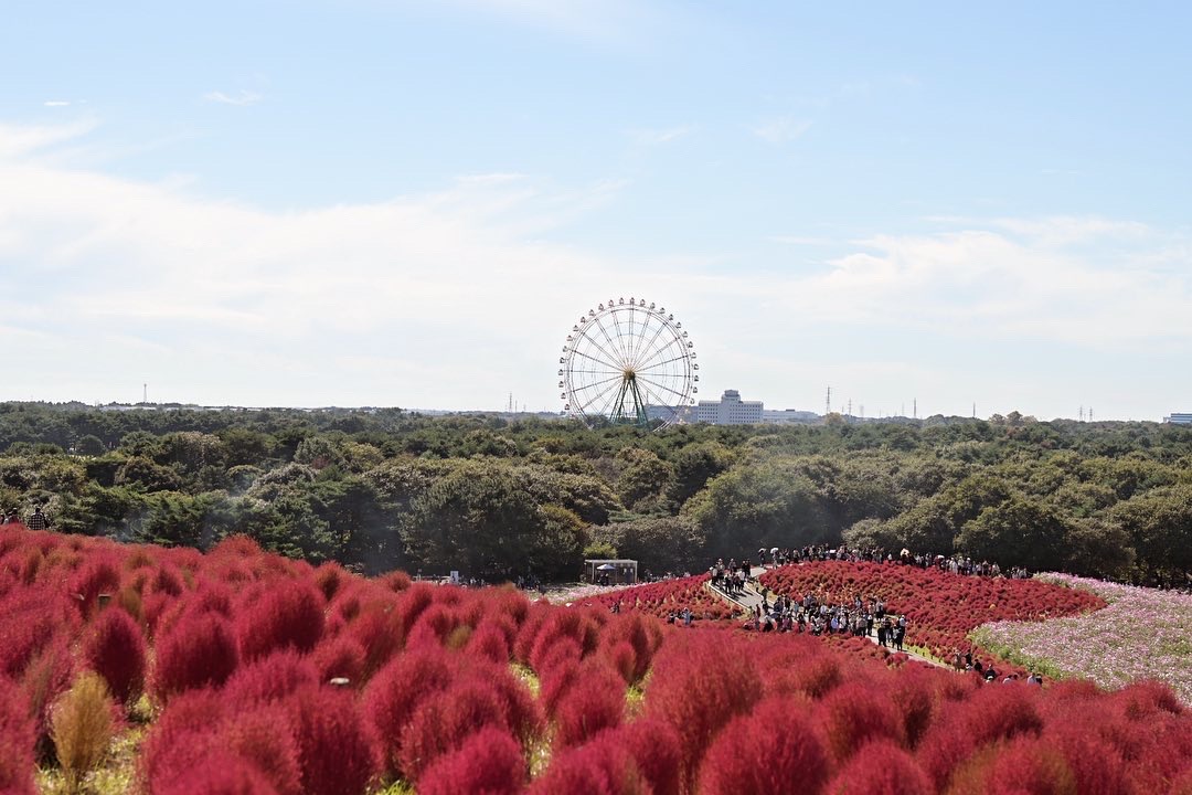 国営ひたち海浜公園は、春のネモフィラ、秋のコキアをはじめ、四季折々の美しい花々が広がる自然豊かな公園です。